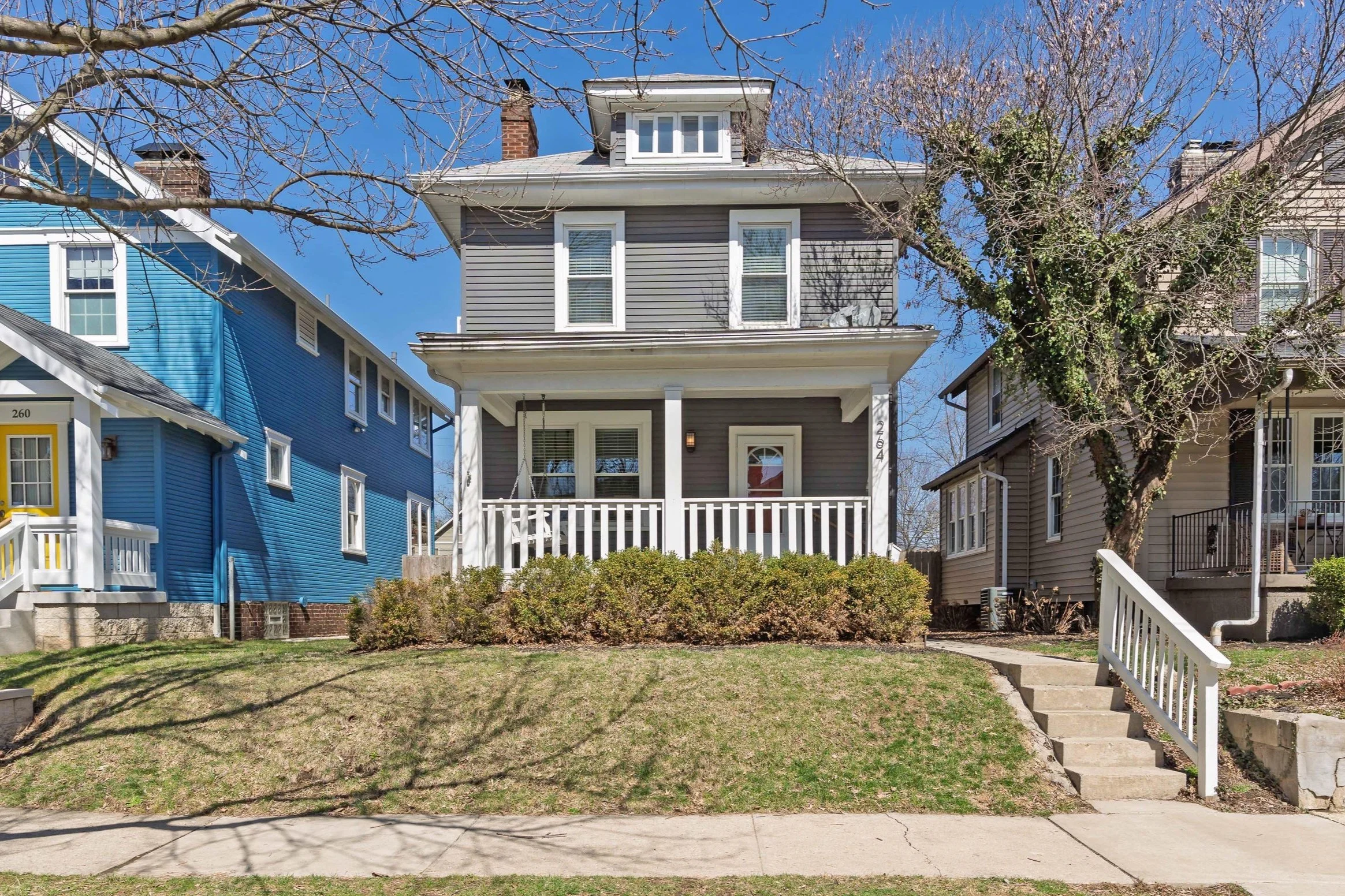 Charming early 1900's 2.5 story home in Merion Village. Featuring: espresso bamboo floors 1st floor, spacious dining room with decorative fireplace, living room, galley kitchen with stainless steel appliances. UPSTAIRS: large primary bedroom with walk-up to attic storage space, nice sized full bath with tub/ shower, guest bedroom. LOWEL LEVEL: full basement, laundry (washer & dryer convey) OUTSIDE: front porch with swing, back porch, patio, private fenced yard and 2 off street parking spaces. A GREAT location with easy access to all Merion Village/ German Village has to offer.