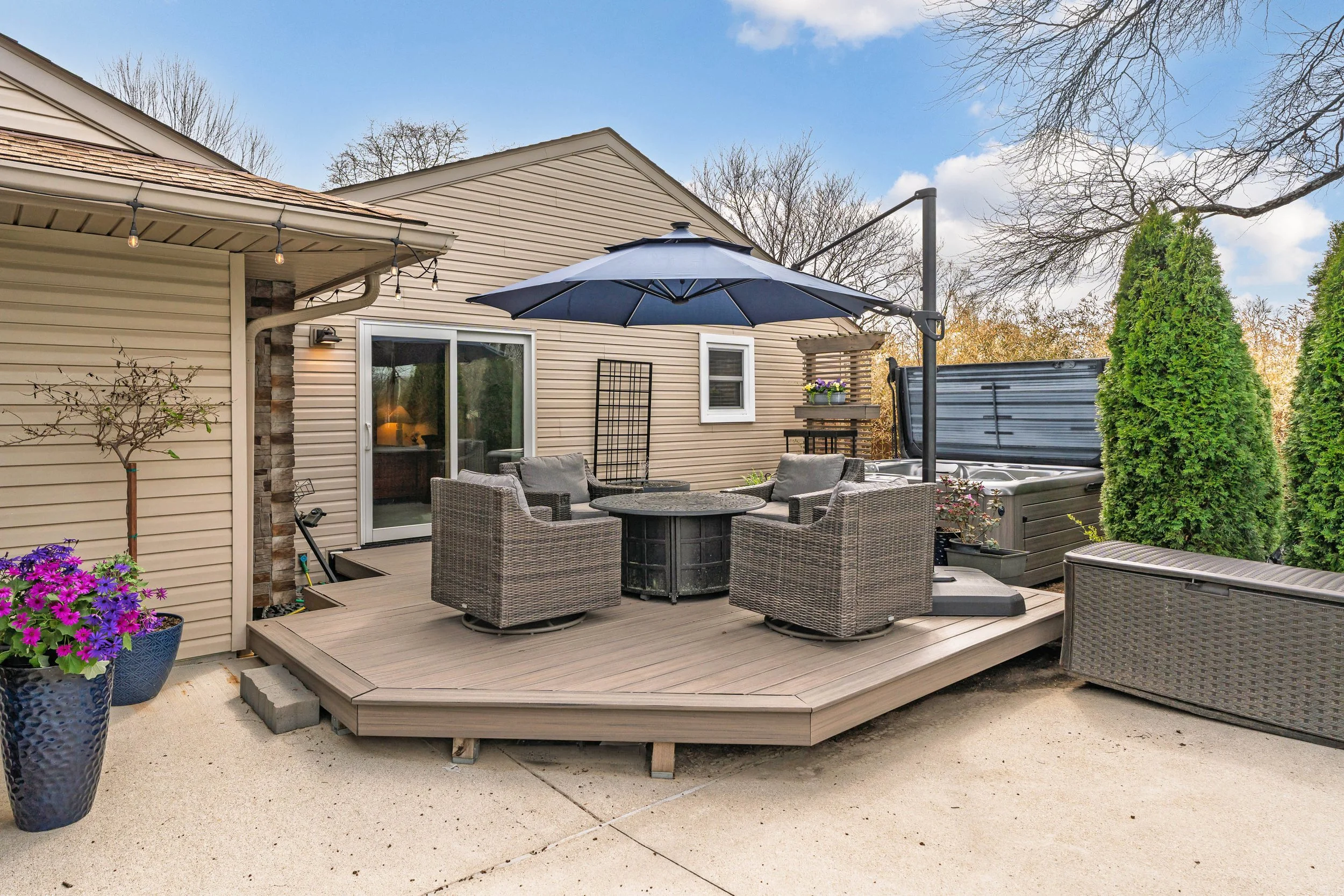 Sliding glass doors to deck/ hot tub